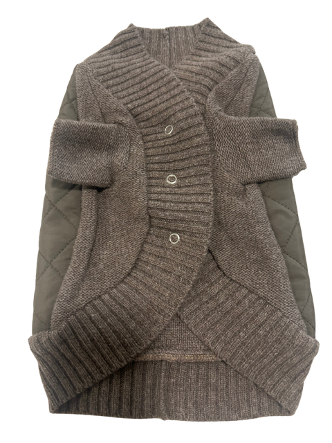 Stil i elegancija s daškom glamura donosi kaputić za pse Grey Brown Cashmere kroz ovaj luksuzni kaputić izrađen od fine mješavine fine vune i kašmira. Model ima duge rukave, i pletenu kragnu.